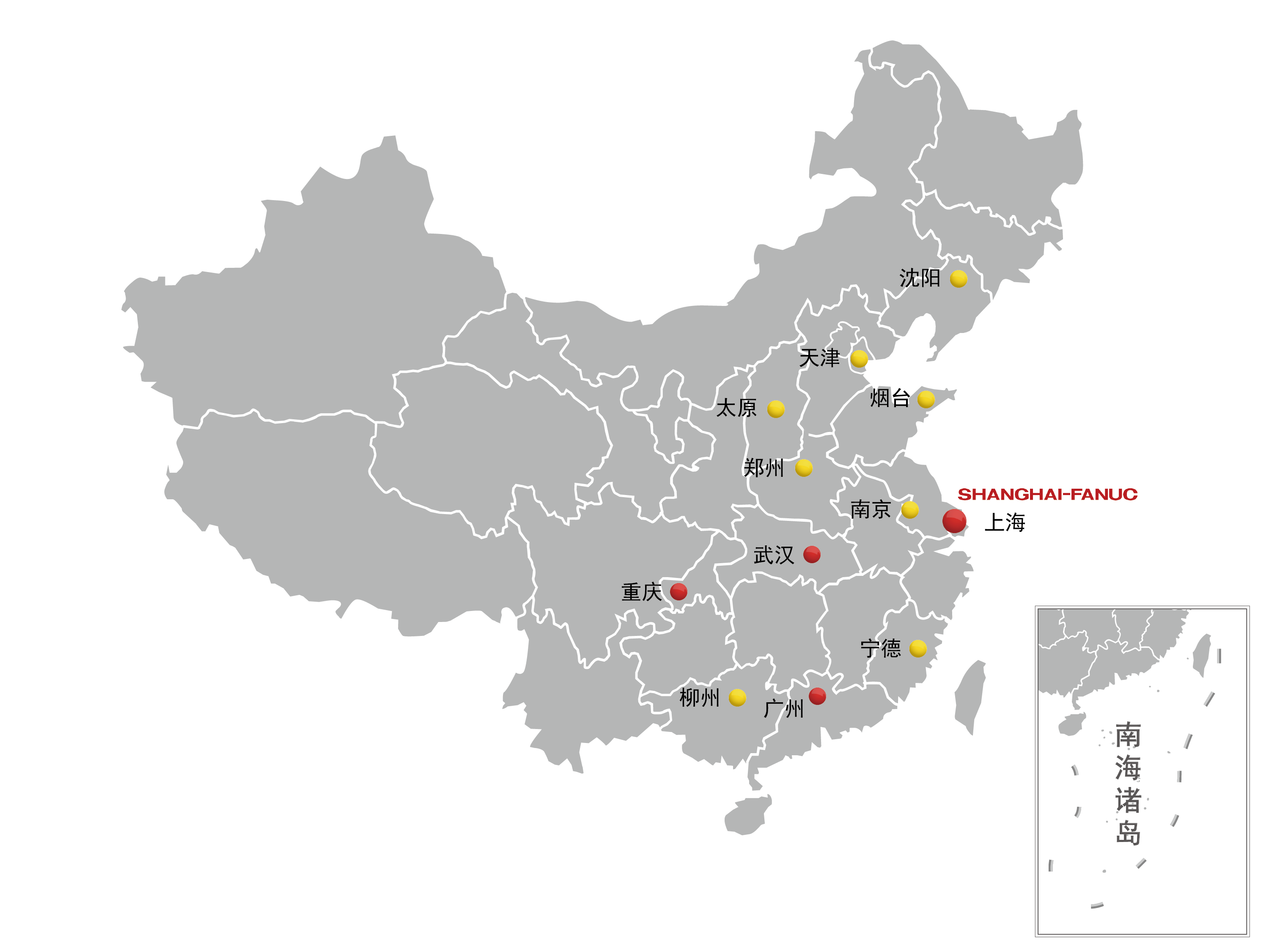 在中國,上海發(fā)那科有限公司于2002年建設了自己的廠房后,2019年在廣州、重慶、武漢成立子公司,又分別在天津、鄭州、南京、沈陽、煙臺、柳州、太原等多地設立了分公司,向國內客戶提供及時的服務。