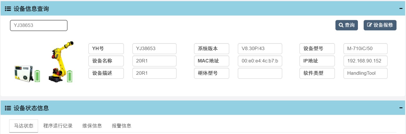 用戶可對有問題的機器人在頁面一鍵報修;上海發那科的服務團隊在后臺收到報修后,將確認問題并聯系客戶解決。